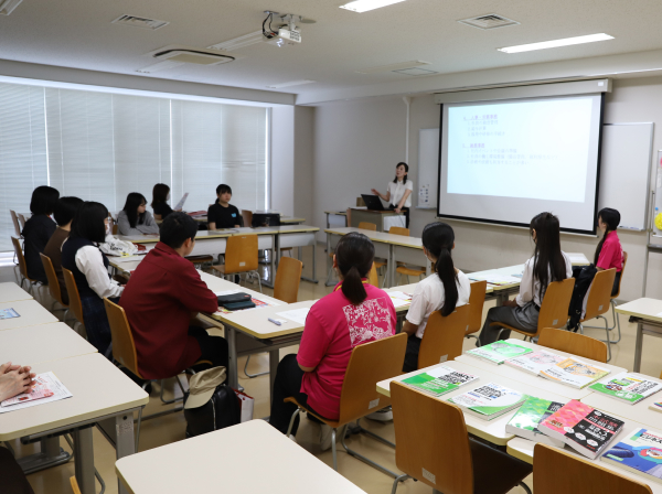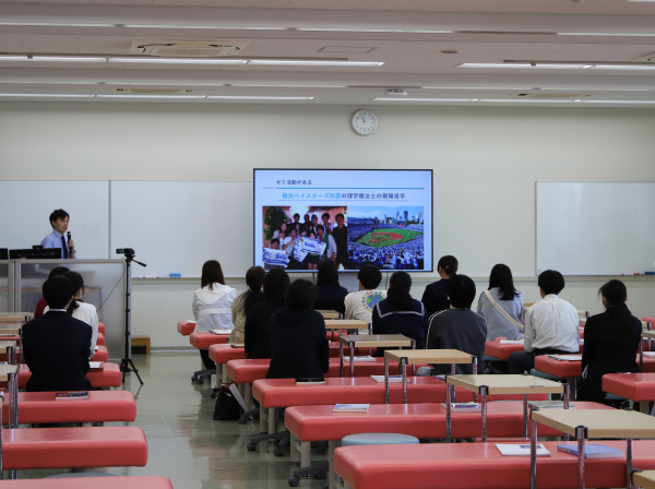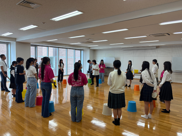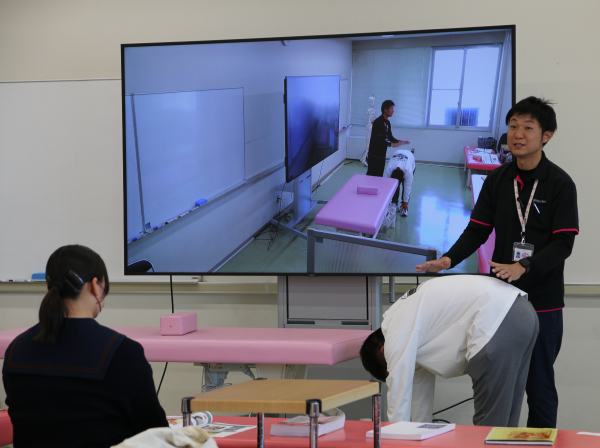 生理学で学ぶ筋肉について体験授業を行い、それに基づいた部活動でも使える運動(トレーニング)を体験します。
