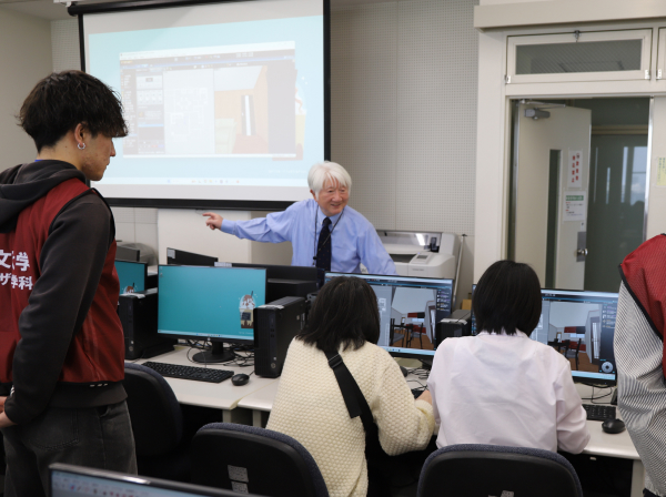 電子カルテシステムを利用して身体図や検査画像をパソコンに貼り付ける体験をします。
